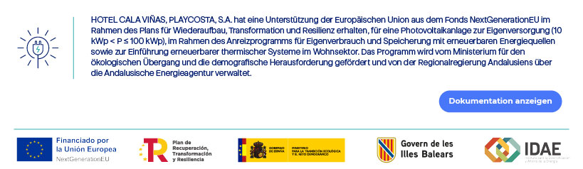 Das Globales Cala Viñas ist ein 4-Sterne-Hotel in erster Strandreihe, gelegen in einer der ruhigsten Gegenden von Cala Viñas. Die privilegierte Lage bietet einen atemberaubenden Blick auf das Mittelmeer. Nur wenige Schritte vom Hotel entfernt befindet sich die idyllische Bucht Cala Viñas – ein geschütztes Naturparadies, ideal für entspannte Badegänge im kristallklaren Wasser.