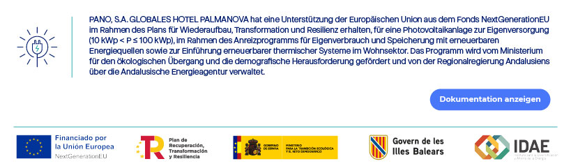 Des Weiteren verfügt das Hotel Globales Palmanova**** über einen Veranstaltungssaal für bis zu 60 Personen, einen 4.600 Quadratmeter großen Garten mit Sonnenschirmen und Liegestühlen, einen Kinderspielplatz, und einen eigenen Parkplatz.
