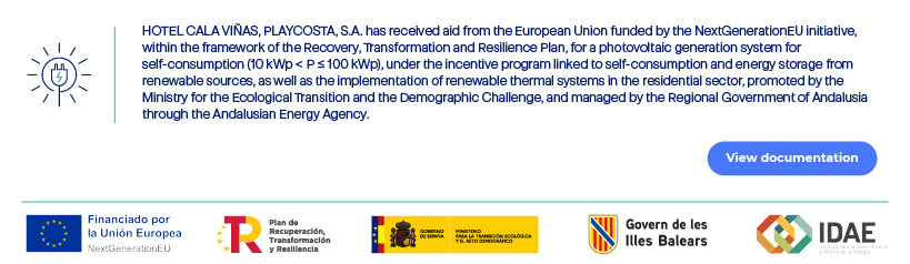 Globales Cala Viñas is a 4-star hotel located on the beachfront, in one of the most peaceful areas of Cala Viñas. Its privileged location offers unbeatable views of the Mediterranean Sea. Just steps from the hotel lies the charming Cala Viñas cove, a natural haven perfect for enjoying calm swims in its crystal-clear waters.